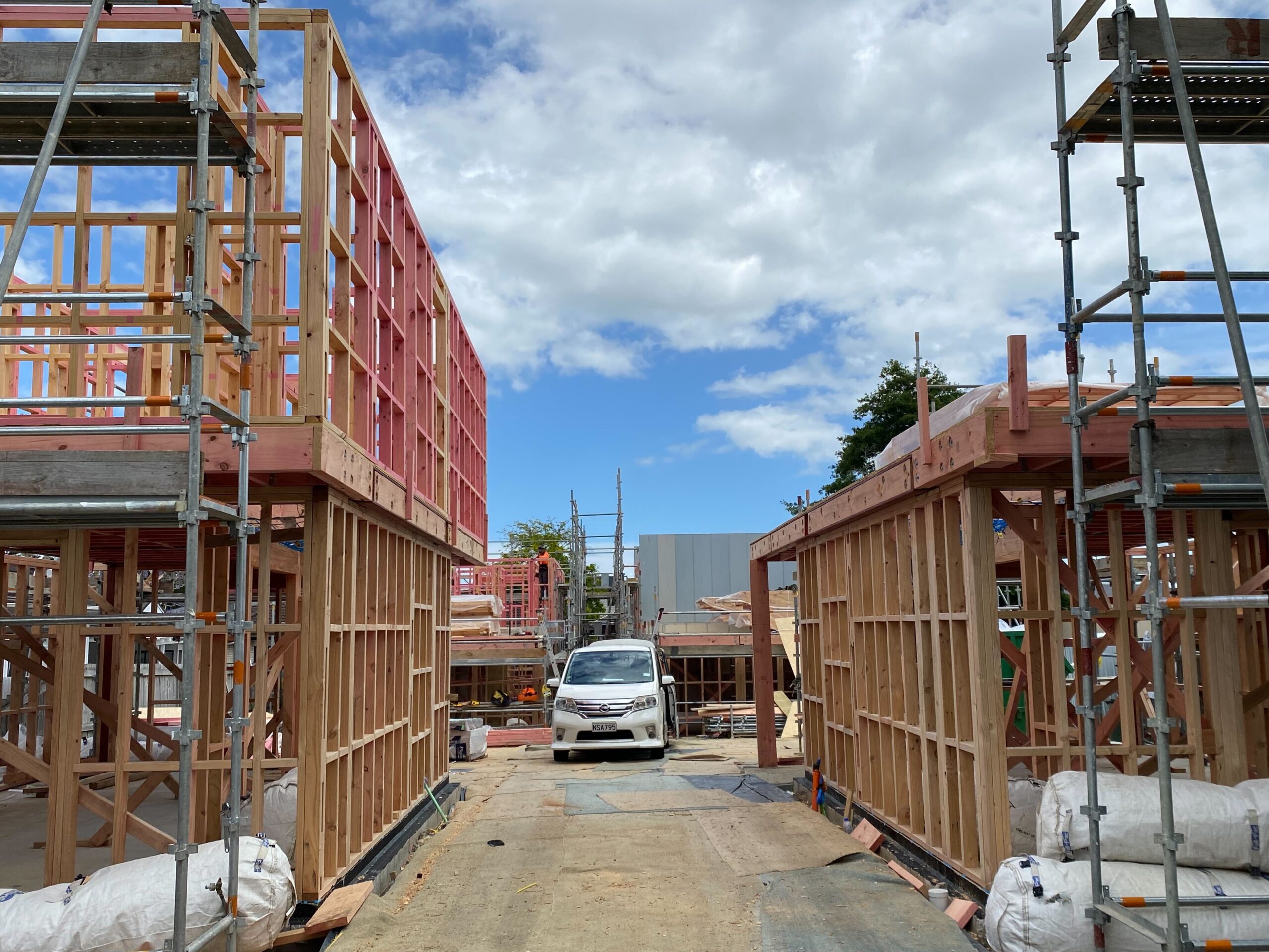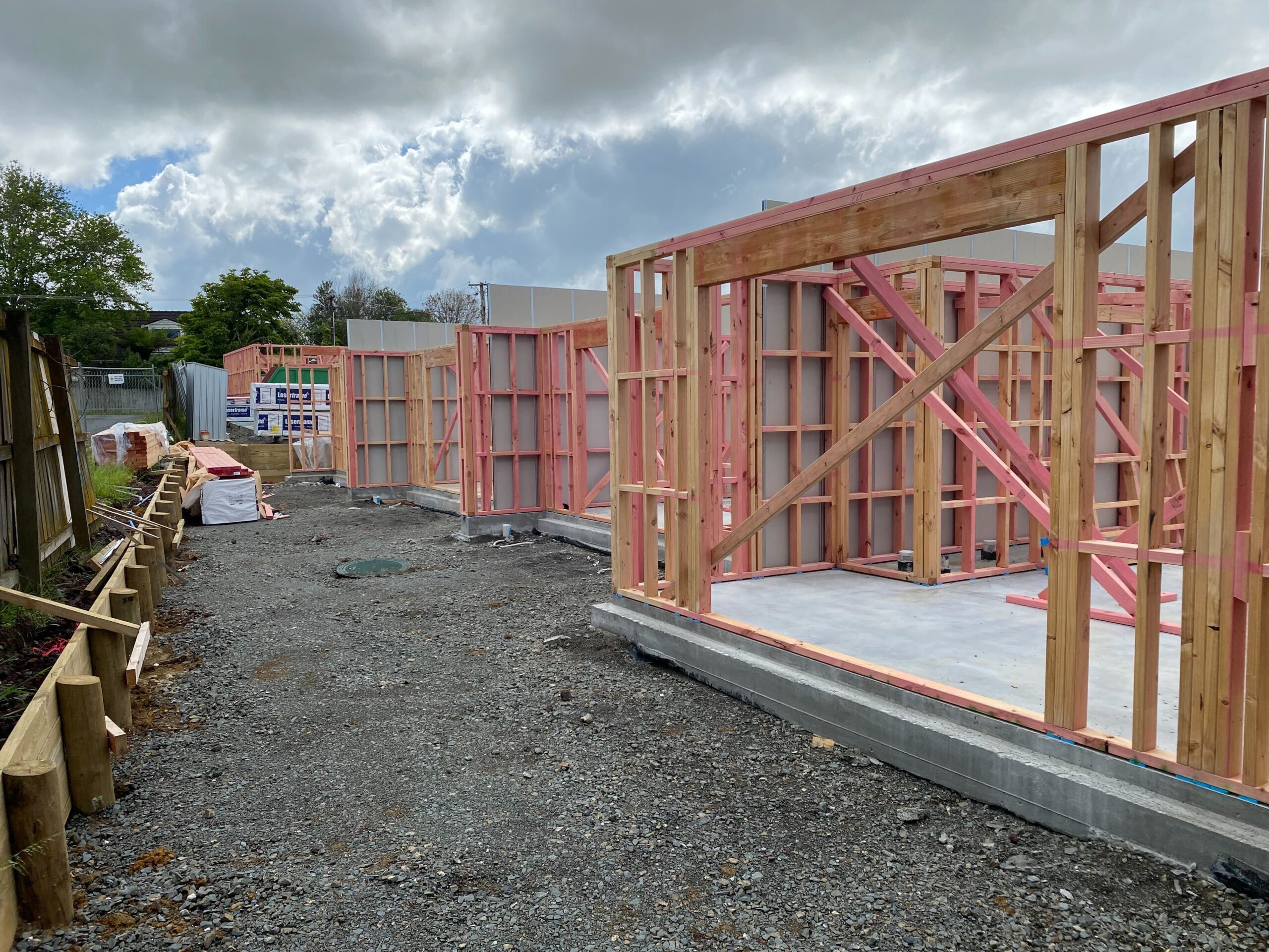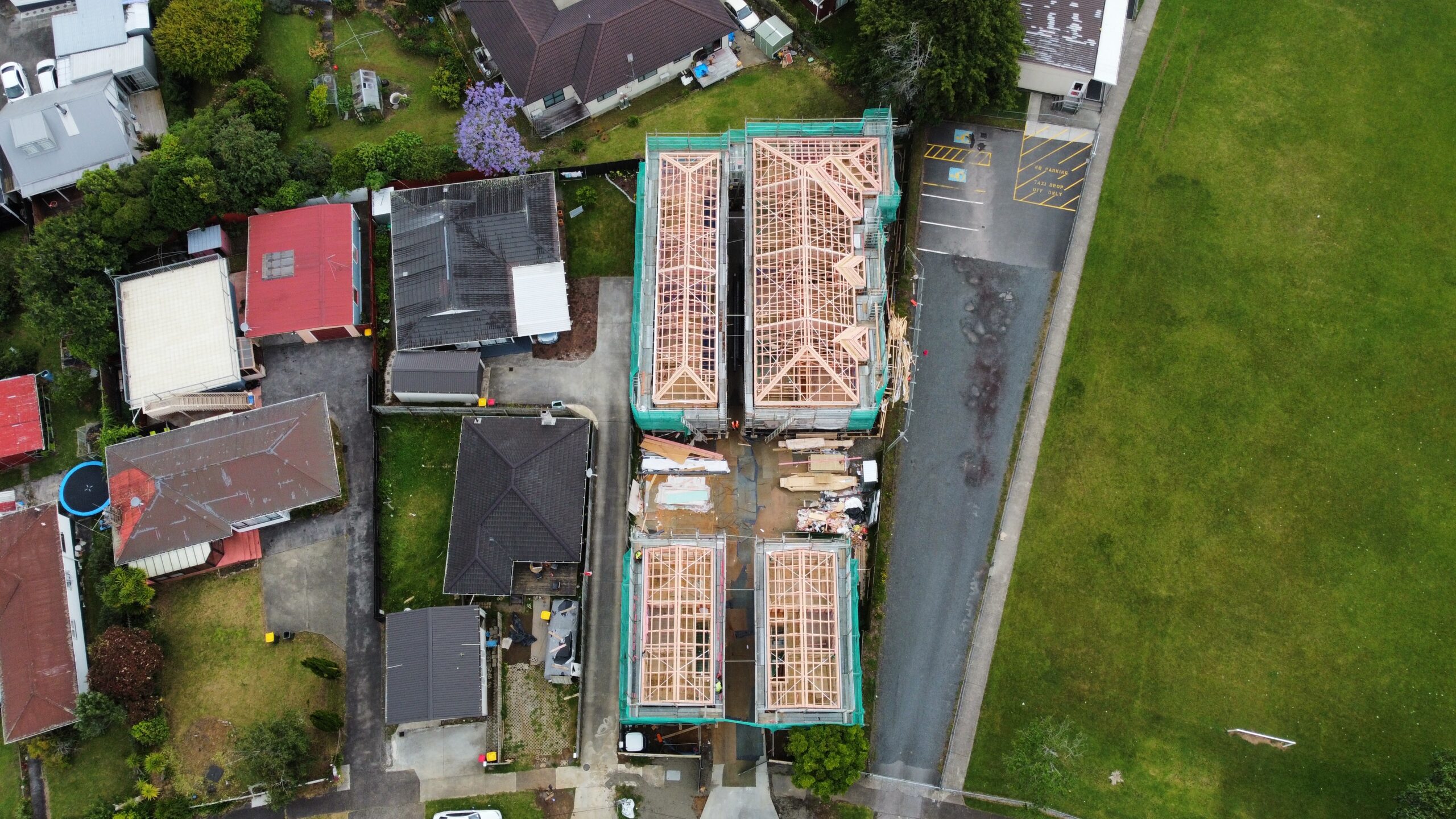 Stage Two Installing slabs, trusses and frames. Stage 1 Civil Works Stage 2 Slabs, Trusses, Frames installed Stage 3 External cladding and roofing Stage 4 Internal linings Stage 5 Final fixes & landscaping Stage 6 settlement & handover Stage Two Progress Standalone Unit Looking out to road Aerial View of Site Aerial View of Site Aerial View of Site with park Looking in from road Stair measure Truss construction, stair and window measure Midfloor joist and board construction underway Midfloor joist and board construction underway Midfloor joist and board construction underway Ground floor framing Ground floor framing Ground floor framing Driveway Concrete Poured Driveway Concrete Poured Concrete slab poured Concrete slab poured Concrete slab poured floor slab box up floor slab box up floor slab box up floor slab box up